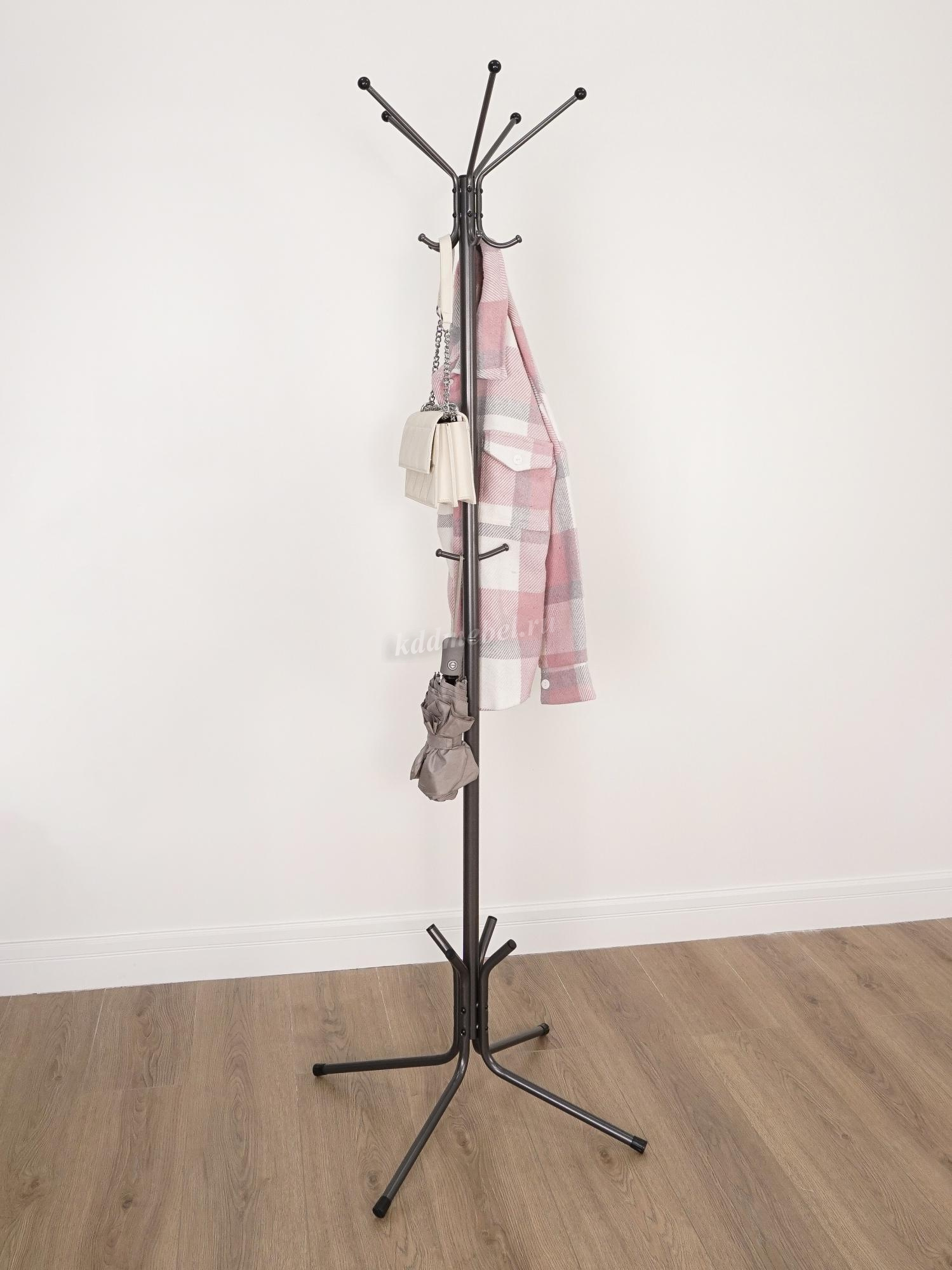 Вешалка напольная "Луч 5" гармонично впишется почти в любой интерьер. Напольная вешалка обладает повышенной функциональностью. Конструкция изделия состоит из 5 верхних крючков, 5 нижних крючков, место под зонты и устойчивые опоры.