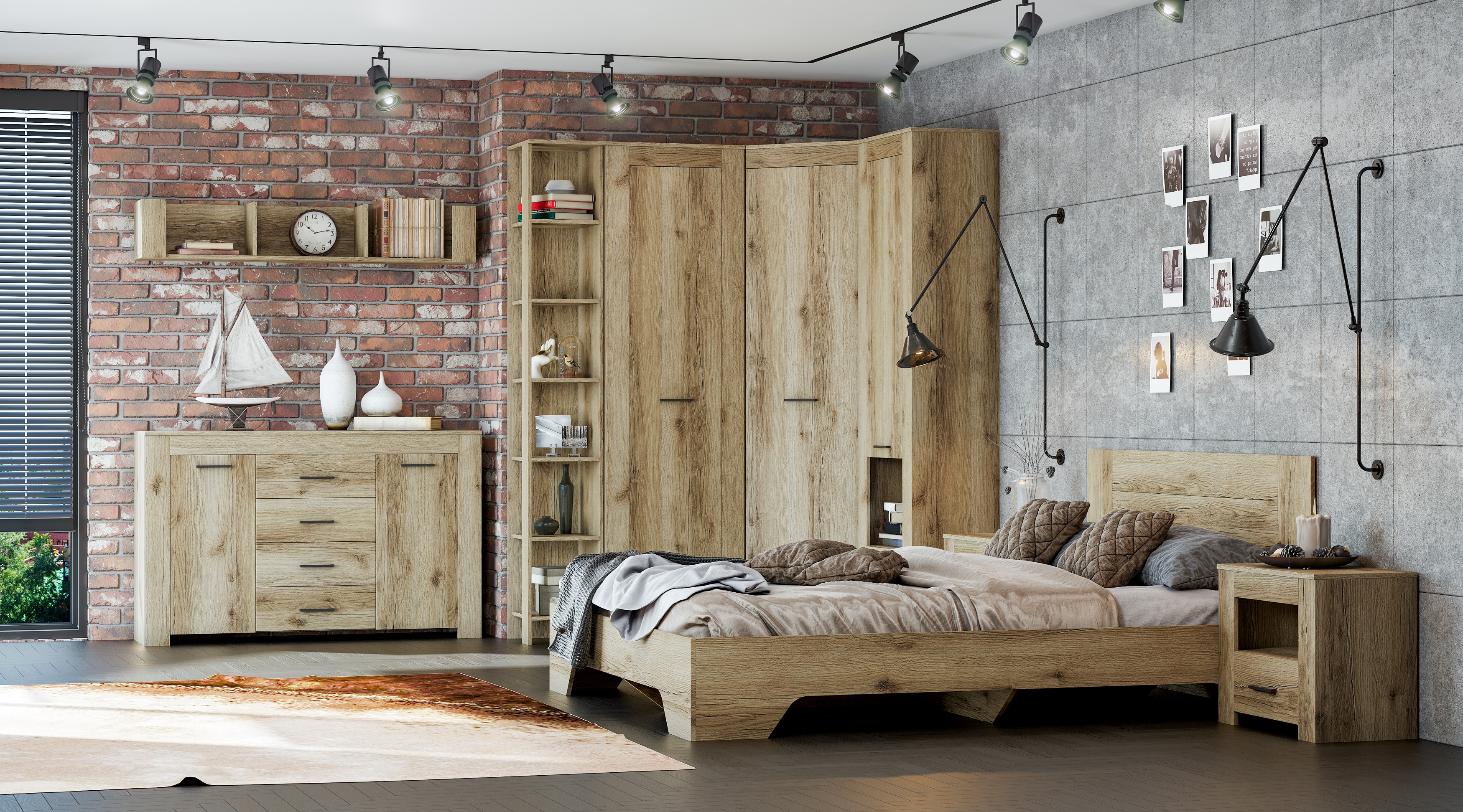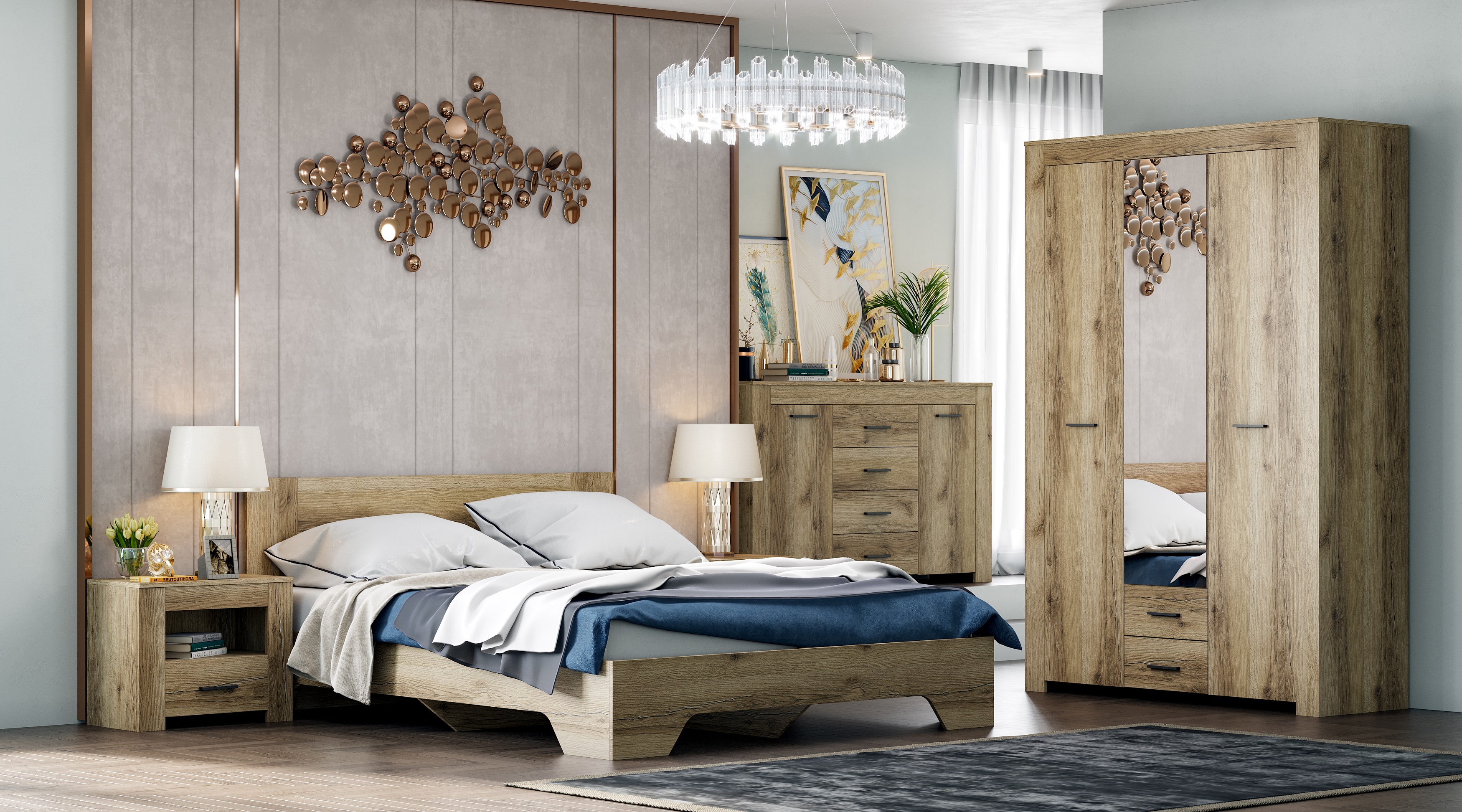 Модульная спальня Квадро (Дуб Делано светлый)